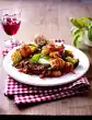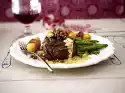 Heat 1 teaspoon of oil in a coated frying pan. Fry the fish fillets for 3-4 minutes on each side. Season lentils with vinegar, salt, pepper and 1 pinch of sugar. Arrange the fish on top. Drain and add the potatoes.