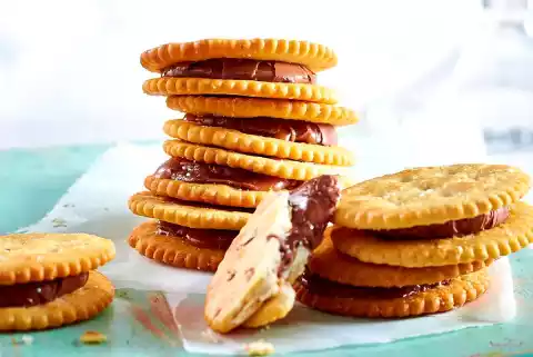 Preheat oven (electric cooker: 150 °C/circulating air: 130 °C/gas: see manufacturer). Line a baking tray with baking paper. Place half the crackers on top and place 1 "Rolo®" in the middle of each. Bake in a hot oven for about 1 minute. Take out, place 2 crackers on each and press down lightly.