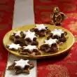 Fold in chocolate. Put the dough on a baking tray (27 x 33 cm) lined with baking paper and smooth it down. Bake in the preheated oven (electric cooker: 200 °C/ gas: level 3) for 25-30 minutes. Let the cake cool down completely. Dust the cake with a star-shaped template or cutter with cocoa and 12 g fructose stars
