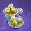 Put 1-2 tablespoons of it in a freezer bag and cut off a small corner. Spray different sized fir trees on 21 biscuits. Stir the rest of the icing with lemon juice until spreadable. Colour the Christmas trees with it and sprinkle or decorate with colourful sugar pearls.