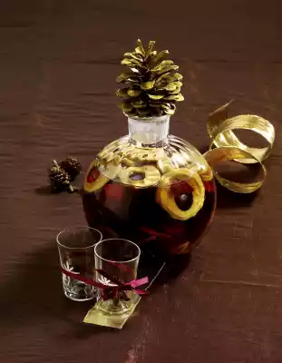 Bring star anise, cinnamon stick and 1/4 litre of water to the boil and simmer for 15 minutes. Remove from heat and let cool. In the meantime, cut figs and dates into slices. Layer figs, dates, apples, cranberries and candy in a carafe or other container (1 1/2 litre capacity). Pour spice liquid and rum into the carafe. Seal and leave to stand for 4 weeks in a cool, dark place