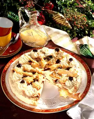 Place a shooting star on each piece of cake. Dust the edge with cinnamon. Makes about 12 pieces.