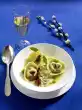 Soak gelatine in cold water. Clean, wash and cut 200 g strawberries into pieces. Mix quark, advocaat, vanillin sugar and 3 tablespoons sugar. Squeeze the gelatine, dissolve, stir in 3 tbsp. quark, then stir into the remaining quark, chill for about 10 minutes until the cream starts to gel