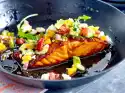 Rinse fish, dab dry and cut into cubes. Heat 2 tablespoons of oil in a frying pan. Fry the salmon for about 5 minutes.