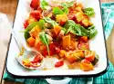 Preheat oven (electric cooker: 200 °C/circulating air: 175 °C/gas: see manufacturer). Put the gnocchi in boiling salted water, steep for about 2 minutes, then drain. Pete