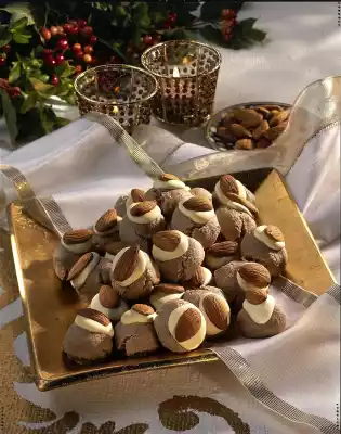 Cover with an almond. Let the cinnamon balls dry for about two hours at room temperature. Bake in the preheated oven (electric oven 150 ° C / gas: level 1) for 20 to 25 minutes. Results in 50 pieces.