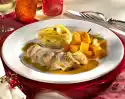 Wash, de-stem and stone plums. Bring port wine, 1/4 l water, 3-4 tablespoons sugar and pimento to the boil. Add plums, bring to the boil again and simmer for 4-5 minutes. Stir starch and some water until smooth. Stir into the plums and simmer for 1 minute