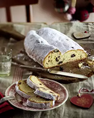 Bake the stollen one after the other in a preheated oven (electric cooker: 225 °C/ convection oven: 200 °C/ gas: see manufacturer) for approx. 12 minutes. Then turn the oven down (electric oven: 175 °C/ convection oven: 150 °C/ gas: see manufacturer) and bake the Stollen for another 30-40 minutes.
