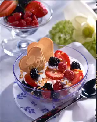 Yoghurt that is available with 1.5 or even only 0.1 % fat Vanilla yoghurt is also a good fit. For dessert, try the combination of blueberries, nectarine and rum - a delicious change