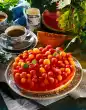 Remove, turn out onto a cake rack after about 10 minutes and let it cool down. Beat the egg white until frothy. Stir in lemon juice and icing sugar. Spread the cake surface with the icing. Halve the cherries. Decorate with cherries, candied lemon peel and sugared almonds
