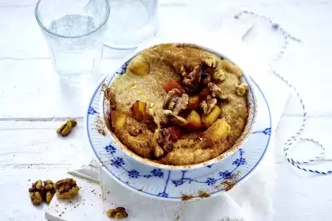 Arrange the porridge in bowls, spread apple and walnut mixture on top and sprinkle with the remaining cinnamon.