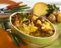 Melt butter and fry carrots in it. Salt a little, add 125 ml water. Cover and cook for about 10 minutes, then drain. Clean, wash and cut spring onions into rings. Wash parsley, cut leaves into strips. Line a flat casserole dish (approx. 24 x 16 cm) with bacon slices so that they protrude approx. 6 cm over the edge. Mix carrots, spring onions and parsley and fill into the dish. Pour egg dough over them. Place overlapping bacon on top.