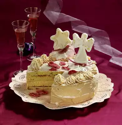 Angel cake with hovering angels