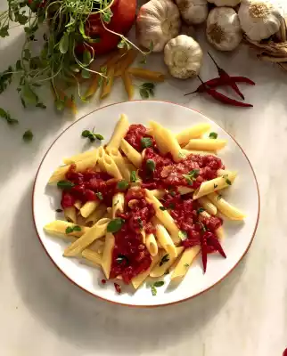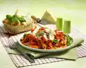 Peel and finely dice the onion and garlic. Wash and dry the chillies and cut them in half lengthwise. Remove seeds and cut into rings. Fry onion, garlic and chillies in hot oil. Add tomato pulp and simmer in open pot for about 5 minutes.