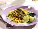 Season to taste with salt. Cook the pasta in bubbling salt water for about 10 minutes until al dente. Pluck the herb leaves from the stems and add to the sauce. Drain the noodles, rinse with cold water and drain. Serve with the sauce on dinner plates