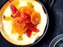 Bring orange juice and 300 ml milk to the boil. Mix the rest of the milk, pudding powder and 2 tablespoons of sugar. Stir into the boiling milk and simmer for about 2 minutes while stirring. Cover the pudding directly on the surface with foil and let it cool down.