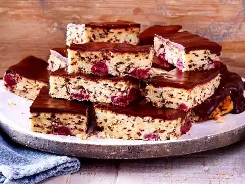 Line a deep baking tray with baking paper, place the dough on it and smooth it down. Bake in a preheated oven (electric cooker: 175 °C/ convection oven: 150 °C/ gas: see manufacturer) for 15-20 minutes. Remove from the oven and allow to cool for about 1 hour.