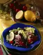 Season to taste with salt, pepper and oregano. Let the antipasti cool down. Clean and wash roughs. Serve the Anti-Pasti with the rocket. Garnish with garlic. Roasted ciabatta tastes good with it.