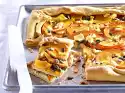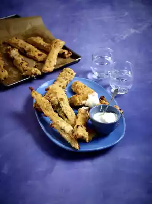 Cut the dough in half. Finely grate 70 g Parmesan cheese. Roll out one half of the dough thinly on a floured work surface. Cut the dough into approx. 2 x 15 cm long strips. Spread the strips on a baking tray lined with baking paper, sprinkle a little Parmesan cheese on each strip and bake in a preheated oven (electric cooker: 200 °C/ convection oven: 175 °C/ gas: see