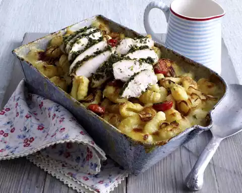 Heat the gnocchi for about 1 minute in boiling salted water. Grate cheese. Drain gnocchi and mix with cream and cheese. Pour into a greased casserole dish. Bake in a preheated oven (electric cooker: 200 °C/ convection oven: 175 °C/ gas: level 3) for approx. 30 minutes.