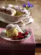Pour egg milk over them, sprinkle with almonds and press down briefly. Bake in the preheated oven (electric range: 175 °C/ convection oven: 150 °C/ gas: level 2) for 20-25 minutes until golden brown. Approx. 5 minutes before the end of the baking time, drizzle honey over it and bake until done, covering with foil if necessary. Take out, let cool down a little and dust with icing sugar