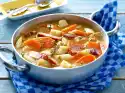 Grease a springform pan (26 cm Ø) and dust with flour. Roll out the dough on a floured work surface until round (approx. 32 cm Ø). Line the form with the dough and press the rim well down. Sprinkle the dough base with hazelnuts. Drain the apple slices and layer them in the mould. Pour the egg mixture over the top, leaving 3-5 mm space to the upper rim. Bake in the preheated oven (electric range: 175 °C/ convection oven: 150 °C/ gas: level 2) for 40-55 minutes until golden brown. Put jam and 1 tablespoon of water in a pot, bring to the boil and pass through a fine sieve. Take out the cake, let it cool down briefly and spread with the jam.