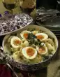 Drain the apple slices and layer them in the mould. Pour the egg mixture over the top, leaving 3-5 mm space to the upper rim. Bake in the preheated oven (electric range: 175 °C/ convection oven: 150 °C/ gas: level 2) for 40-55 minutes until golden brown. Put jam and 1 tablespoon of water in a pot, bring to the boil and pass through a fine sieve. Take out the cake, let it cool down briefly and spread with the jam. Put the cake on a plate and dust with icing sugar