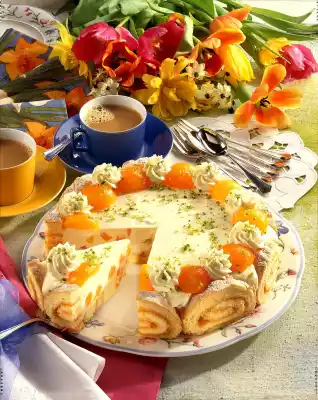 (26 cm Ø) onto a cake plate. Place slices on the edge and on the base