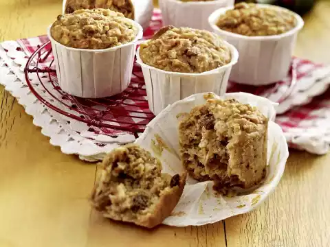 Line the troughs of a muffin tin (12 troughs) with paper baking cups. Spread the dough into the baking cups. Bake in the preheated oven (electric cooker: 175 °C/ convection oven: 150 °C/ gas: level 2) for 20-25 minutes. Take out, let cool in the form for about 10 minutes. Take the muffins out of the tin and let them cool down on a cake rack