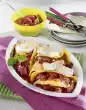 Add the quark, 6 tbsp. milk, egg and oil, knead to a smooth dough with the dough hooks of the hand mixer. Divide into 10 pieces of equal size. Form into 10 balls with floured hands. Press the balls flat or roll them out a little (approx. 4 mm thin) and place them next to each other, slightly offset, on 2 baking trays lined with baking paper.