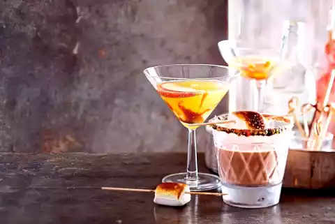Wash and core the apple and cut into 4 thin slices. Put 1 tsp. caramel spread and 2 tsp. vodka in each of four martini glasses. Pour in cider. Serve with 1 apple slices each. If the drinks are not chilled, simply add 1-2 ice cubes to the glass at the end.