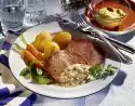 Refine ragout with cream. Season to taste with horseradish, salt and pepper. Arrange everything. Boiled potatoes taste good with it