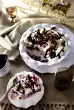 Stir 3 tbsp. juice and 30 g starch until smooth. Stir the mixed starch into the boiling apple pieces, bring to the boil and simmer for about 1 minute. Remove from the stove, let it cool down a little. Whip the chocolate cream briefly with the whisk of the hand mixer. Cut the cake base 2x evenly. Place a cake ring around the lower cake base. Spread the canache evenly on the cake base and smooth it down. Place the second cake base on top. Spread the apple compote on the cake base and finish with the top cake base. Chill for about 15 minutes