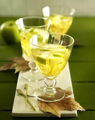 Wash the apple, grate dry, quarter, core and cut into pieces. Mix apple juice, calvados and orange peel. Put the apple pieces into the glasses. Pour apple Calvados over them and fill up with Prosecco.