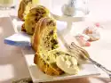 Separate eggs. Beat egg whites until stiff. Whisk egg yolks, milk, sour cream, sugar, vanillin sugar, salt and flour. Fold in egg whites. Put the dough aside. Meanwhile wash apples, peel 2 pieces, quarter them all, remove core.