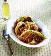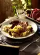 Wash, peel and core apples and cut them into thin slices. Select the blackberries, wash and drain well. Mix apples and berries and place in an ovenproof dish. Sprinkle with 20 g sugar