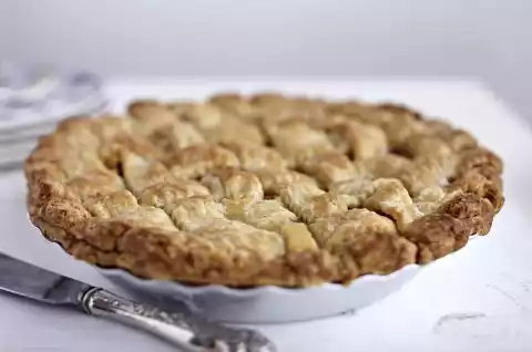 Bake the pie for 15 minutes in a preheated oven (electric oven: 215 °C/ convection oven/ gas: not suitable), then reduce the temperature to 195 °C and bake for another 15 minutes. Finally reduce the temperature to 185 °C and bake for another 10-15 minutes. If the crust becomes too dark, cover the pie with aluminium foil for the rest of the baking time. The pie is ready when it is golden brown
