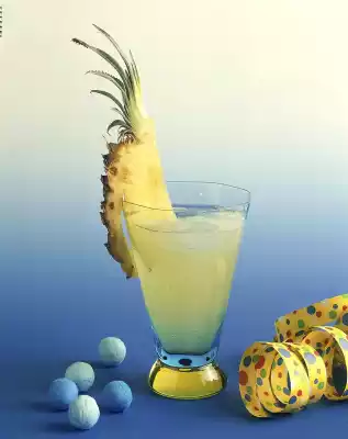 Put the apple corn, vodka and pineapple juice in a glass with ice cubes. Top up with mineral water. Garnish with 1 column of baby pineapple.