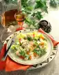 Peel and finely dice the shallot. Mix shallot, vinegar, salt and aniseed and fold in oil drop by drop. Roast walnuts in a pan without fat for approx. 3 minutes. Clean, wash and quarter the chicory.