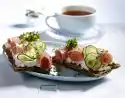 Cut apple into sticks and sprinkle with lemon juice. Layer rice pudding and yoghurt in a bowl and sprinkle with the drained apple sticks. Dust with cinnamon and decorate with mint and apple slices.