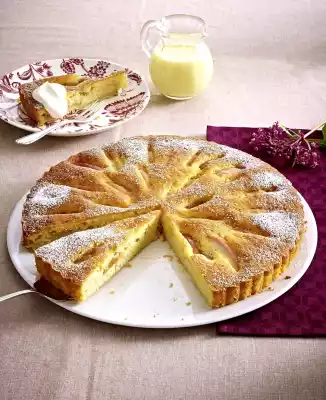 Pour into a greased tart mould (26 cm Ø; with lift-off base), dust with flour. Press fruit wedges into the dough with the skin side facing upwards in a sunny position. Cake in a preheated oven (electric cooker: 175 °C/ convection oven: 150 °C/ gas: see
