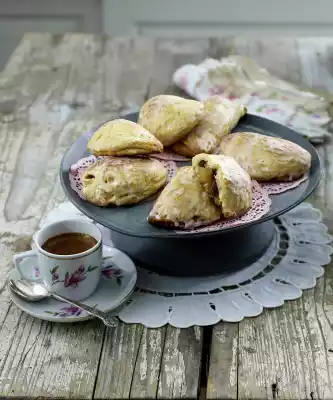 Stir icing sugar, 1 tablespoon lemon juice and 1 tablespoon water to a smooth glaze. Take apple pockets out of the oven and spread a thin layer of prepared icing.
