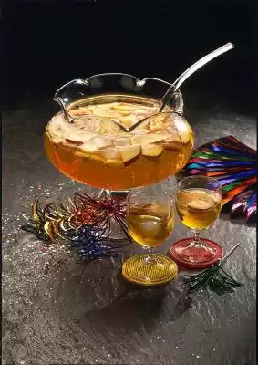 Wash and quarter the apples, remove the core and cut the flesh into strips. Sprinkle with lemon juice. Wash the lemon thoroughly and cut into thin slices. Pour apple corn, ginger ale, apple juice, apple and lemon slices into a punch bowl. Fill up with cold champagne. Add ice cubes