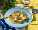 Wash the coriander, dab dry and chop the leaves coarsely. Place the prawns, chicory and 2/3 of the coriander in the pan, toss briefly and season again. Drain the rice and garnish with coriander.