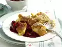 Peel apples. All around, up to the core, cut off slices. Cut the apple slices into small cubes, sprinkle with lemon juice. Melt 50 g butter in a saucepan. Add apple cubes, cinnamon stick and 50 g sugar, cover and steam for about 5 minutes. Let it cool down, remove the cinnamon stick. Warm the milk lukewarm.