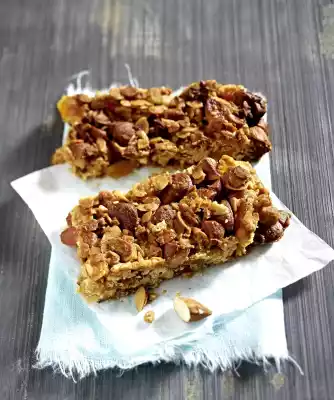 Pour the muesli mixture onto a baking tray lined with baking paper. Form into a rectangle (L: 30 cm x W: 20 cm x H: 2 cm). Bake in a preheated oven (electric cooker: 175 °C/ convection oven: 150 °C/ gas: see manufacturer) for approx. 25 minutes until slightly browned and pressure-resistant. Allow to cool for approx. 10 minutes, then cut into 20 bars (each approx. 4 x 10 cm)