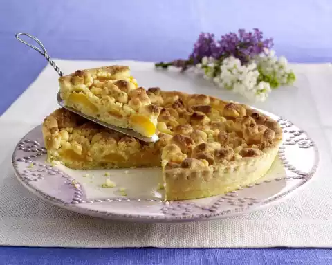 Sprinkle almonds on the base, then cover with the apricot halves. Sprinkle the apricots with lime juice and spread the rest of the crumbles on top. Bake the tart in the preheated oven (electric range: 200 °C/ convection oven: 175 °C/ gas: level 3) on the lower rack for 30-40 minutes. Cake tastes lukewarm or cold