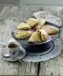 Bake in the preheated oven (electric cooker: 175 °C/circulating air: 150 °C/gas: level 2) for approx. 20 minutes. Spread 1 tablespoon butter in flakes on top and bake for about 10 minutes. Coarsely chop the pistachios and sprinkle over them