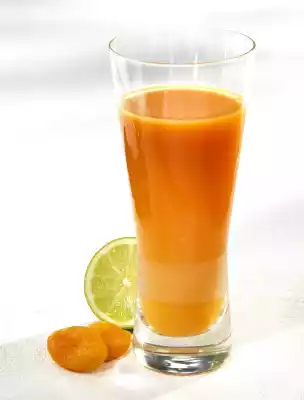Finely dice the apricots. Finely puree apricot juice, oat flakes, honey, lime juice and apricots. Fill up with carrot juice