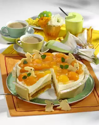 Halve the lemon and squeeze the juice. Add the juice and rind to the quark. Add 125 g sugar and 1 packet of vanillin sugar and mix everything together. Whip the cream until stiff. Squeeze the gelatine, dissolve and stir in 2 tablespoons of quark cream. Stir the gelatine into the remaining quark cream and fold in the cream. Spread the quark cream on the second sponge cake base and smooth it down. Put the cake in a cool place for at least 4 hours. Place the remaining apricots on the quark cream and measure 250 ml apricot juice again. Add 3 tablespoons of apricot liqueur and the second packet of cake glaze as described, mix with 1 tablespoon of sugar and juice and bring to the boil. Spread the glaze evenly over the apricots and chill for about 30 minutes. Knead the marzipan and 75 g icing sugar and roll out into two strips 35-38 cm long and 6-7 cm wide. Cut the strips straight (about 5 cm wide). Heat the jam and pass through a sieve. Remove the cake from the cake ring and spread the edge, except for the quark cream, with jam. Press the marzipan strips to the edge and bend the upper edge outwards. Knead the remaining marzipan sections again, roll out and cut out small bunnies as desired. Paint the bunny's eyes and nose with sugar writing. Decorate the cake shortly before serving with bunnies and lemon balm leaves and dust with icing sugar
